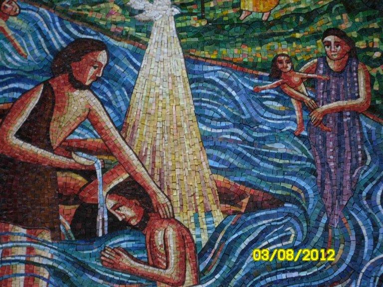 During the summer of 2012, artists from the Judson Studios in Italy crafted a mosaic of The River, a painting by John August Swanson. This fine piece was installed above the courtyard fountain in memory of Ted Siirila. Look for it in the courtyard when you visit St. Matthew Church.